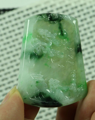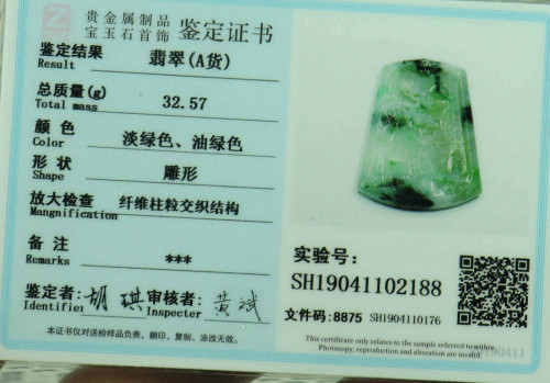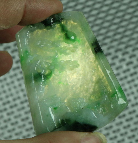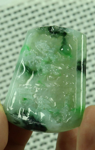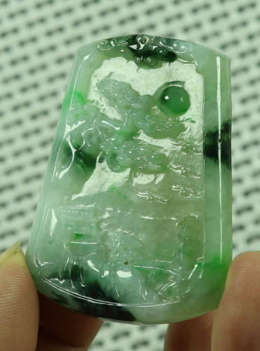 Cert'd Green Natural A Jade jadeite Carved Pendant Landscape