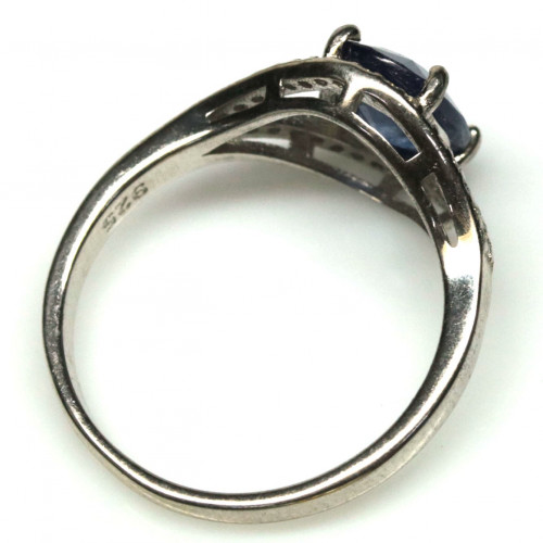 925 Sterling Silver 6 x 9 mm. Blue Sapphire & Zircon Jewelry Ring Size 7.75