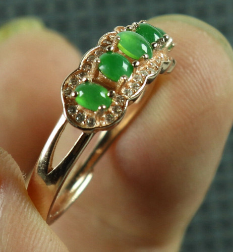 925 Silver Cert'd Emerald 100% Natural A Jade jadeite Adjustable Ring 戒指