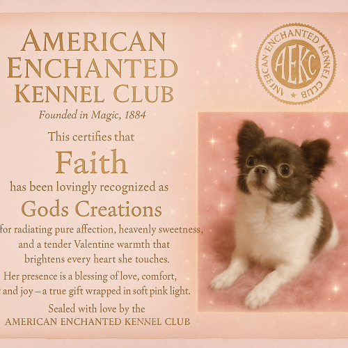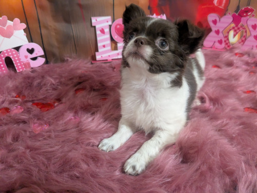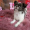 Meet Faith , a stunning exclusive beautiful apple head Chocolate n White Medium Coat Female Chihuahua.
