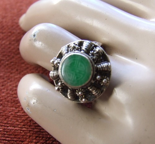 Gorgeous Vintage Asian Silver and Jade Ring with Adjustable Band