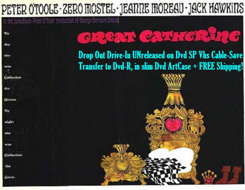 "Great Catherine" (1968){Dvd-R} I'm offering a transfer to Dvd-R of my SP Vhs save, from channel that aired movies commercial free, of this UNreleased on dvd classic film rarity, sent in dvd slimcase w/simple artsheet insert +FREE shipping w/USPS Delivery Confirmation tracking!