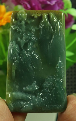 Cert'd Blue water 100% Natural A Jade jadeite Pendant Landscape