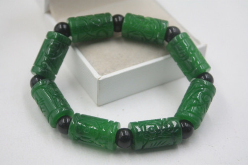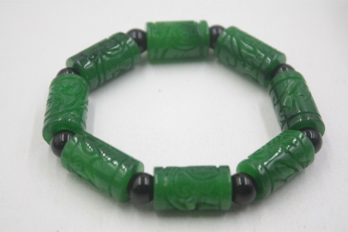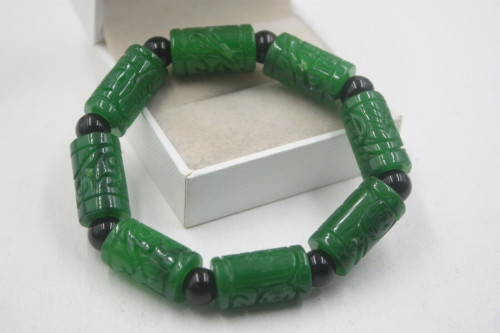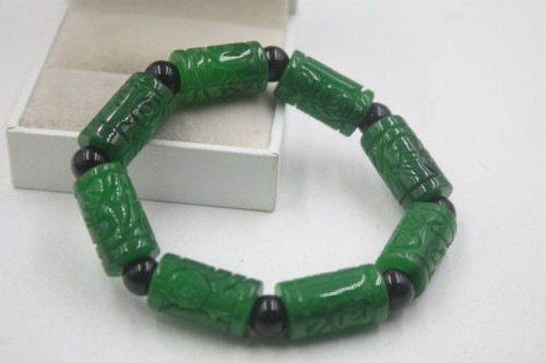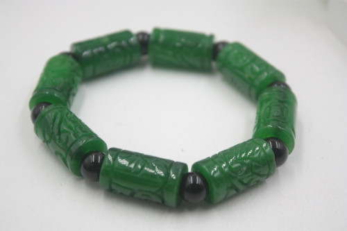 Grade A Jade (jadeite) Green Coin Tube Big Bead Knitted Bracelet