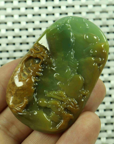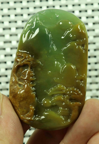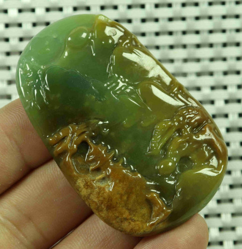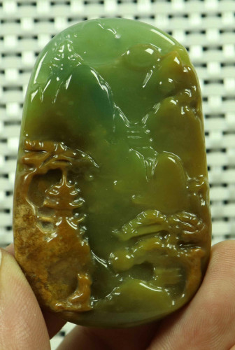 Cert'd Yellow Natural A JADE jadeite Carved Pendant Landscape 山水