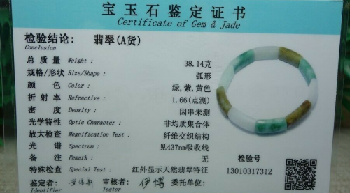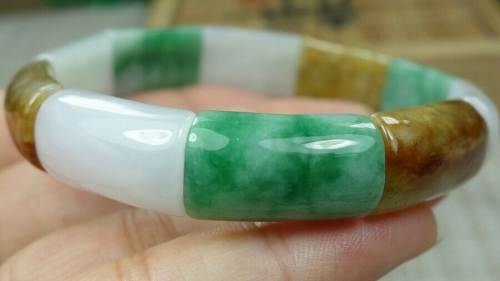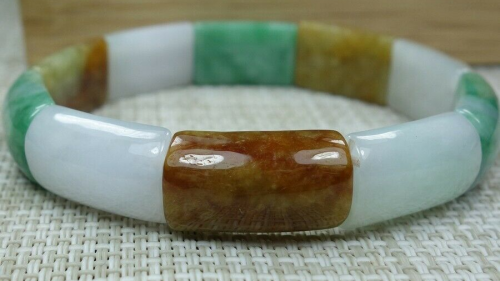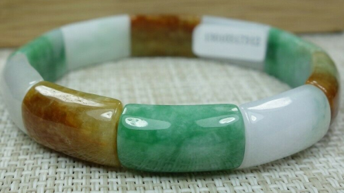 Certified Green+Yellow+light purple 100% Natural A Jadeite jade Bracelet 手链