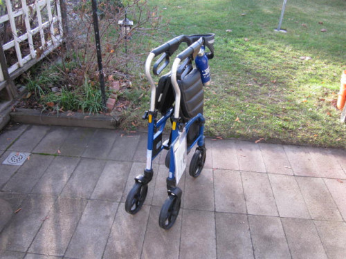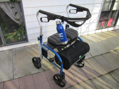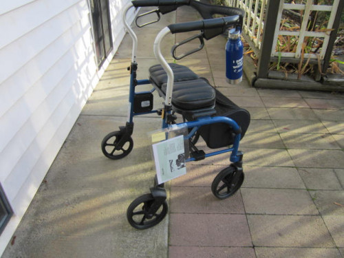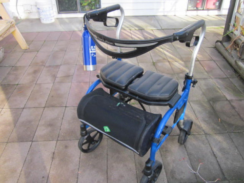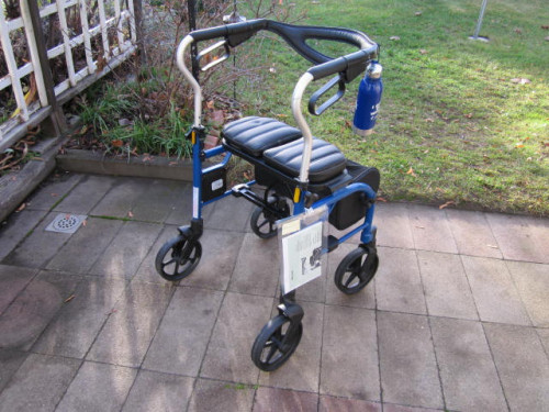 KELOWNA. SERVICED AND SANITIZED BLUE EVOLUTION TRILLIUM (MINI , AND TALL) ROLLATOR WALKERS FOR SALE. SEAT HEIGHT MEASURES 24.5" HIGH ,HANDLE HEIGHT RANGES FROM 34.5" TO 37.5" HIGH. FEATURES INCLUDE: 300 POUND WEIGHT CAPACITY , LARGE 8" WHEELS , BONUS BEVERAGE BOTTLE , WIDER COMFORT BACK REST , CONCEALED BRAKE CABLES , COLLAPSIBLE STORAGE BASKET ,REAR WHEEL LOCKING BRAKES ,NIGHTTIME SAFETY REFLECTORS , AND SIDE FOLDING FRAME WHERE WALKER REMAINS STANDING WHEN FOLDED BY LIFTING UP HANDLE ON SEAT. SELLS NEW OVER $500. BLACK TRILLIUM MINI AND TWO TRILLIUM TALL ALSO AVAILABLE AT $285 PRICE.