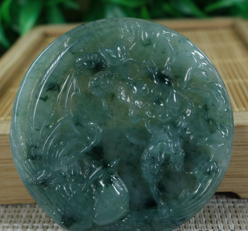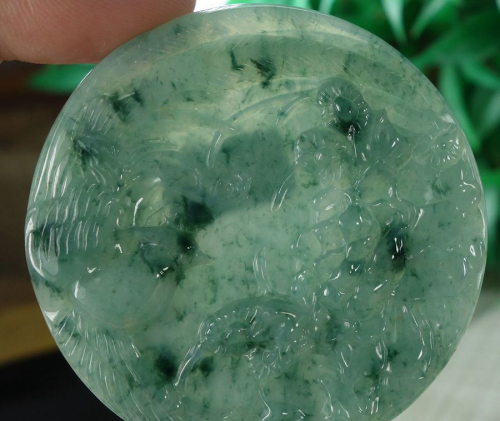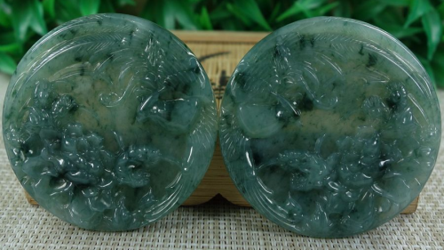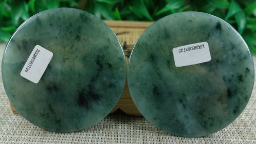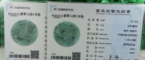 1 Pair Certified Green 糯冰飘花 100% Natural A jadeite Jade pendant~