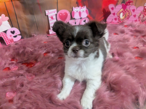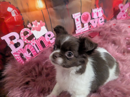 Meet Faith , a stunning exclusive beautiful apple head Chocolate n White Long coat female chihuahua.