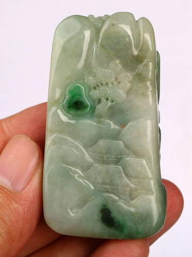 Cert'd Untreated Natural Green Grade A Jade jadeite Pendant landscape r654742