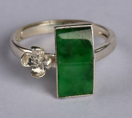 925 Silver Cert'd Untreated Natural Green Grade A Jadeite Ring