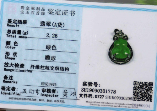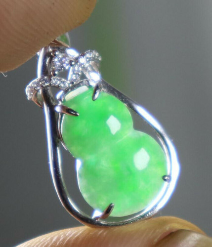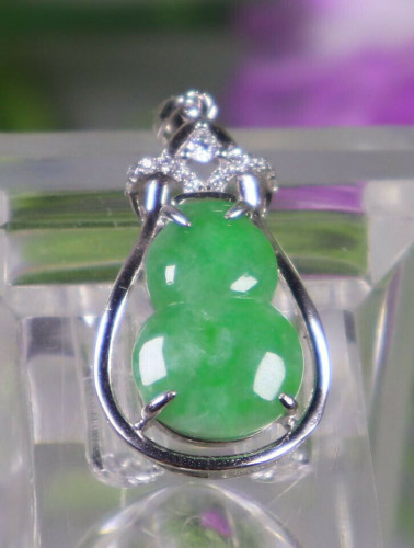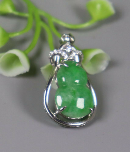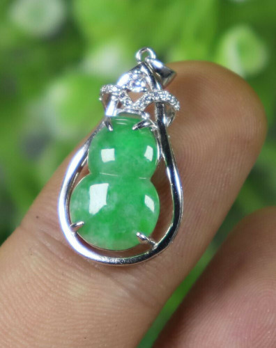2.26 g Cert'd 925S Green Natural A JADE jadeite Pendant gourd