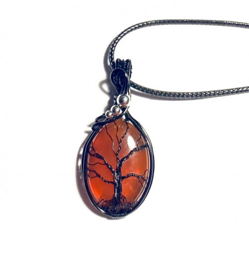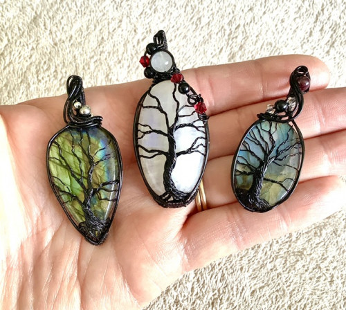 Black Wire Wrap Gemstone Tree Pendants