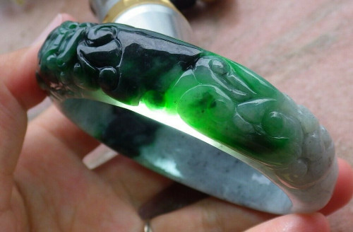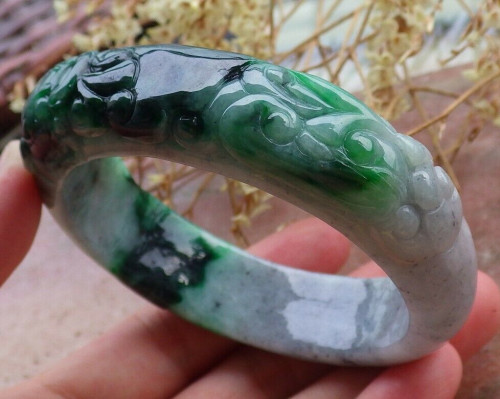 Certified Natural A JADE Jadeite Goose Dragon Bangle Bracelet