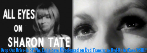 "All Eyes on Sharon Tate" (1966 B&W Film Short){DVD-R} I am offering a transfer of my UNreleased on Dvd, first hand SP vhs cable save, from channel that airs titles commercial free (SEE SCREEN CAP PICS) on Dvd-R, sent in a dvd slimcase w/simple artsheet insert. For safer arrival FREE Media Mail shipping will include cost of Signature Confirmation which will require package be signed for. Price is FIRM, the ONLY discount I offer is $2 off if prefer to order dvd-r as plain/caseless in paper dvd envelope rather than in dvd slimcase w/simple artsheet insert as I usually send. PS: feel free to ask me to email screen cap pics if the site page shows them too small ;)