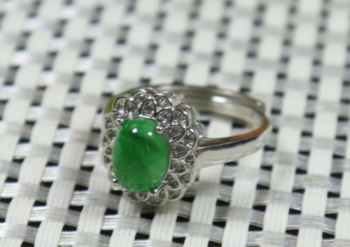 Silver Cert'd Green 100% Natural A Jade jadeite Adjustable Ring