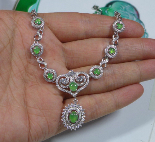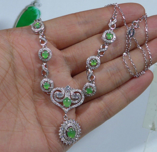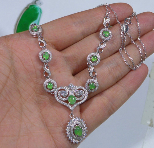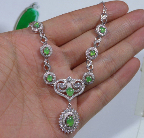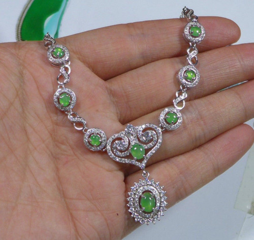 Natural A Icy Emerald Jadeite Jade Oval Cabochon S925 Necklace