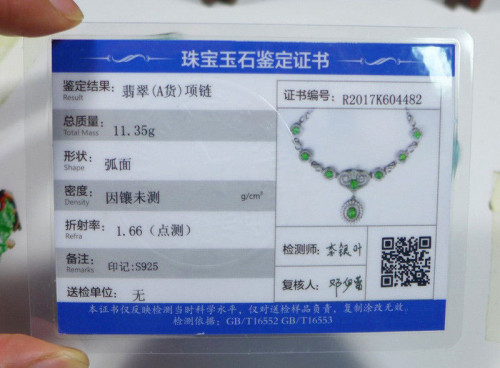 Certified Fine Natural Grade A Icy Emerald Jadeite Jade Oval Cabochon S925 Necklace