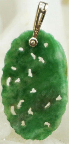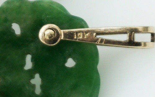 10K Yellow Gold & Dark Green Carved Jade Pendant!