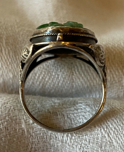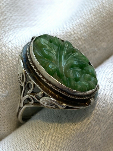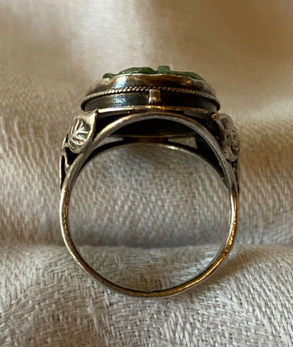 Antique Vintage Silver Arts & Crafts Carved Jadeite Ring 4 Grams