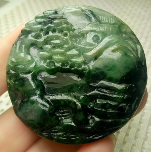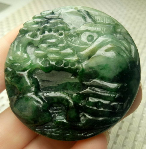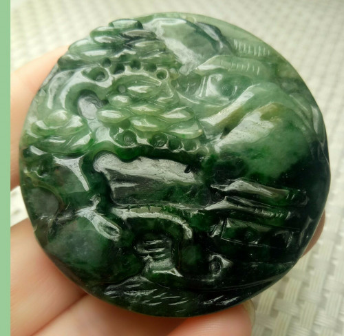 Certified Deep Green Natural A Jadeite Emerald Pendant Landscape painting 山水画