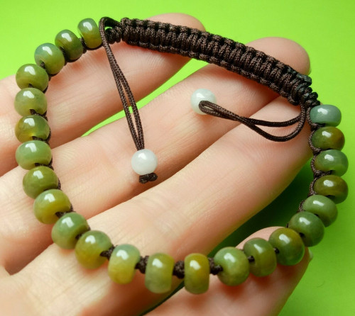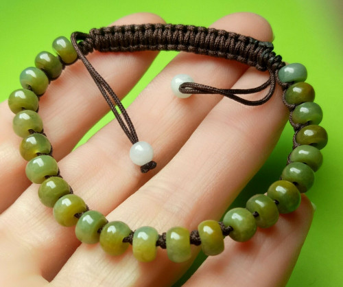 Green Natural A Jade Jadeite Hand-Knitting Circle Bead Bracelet