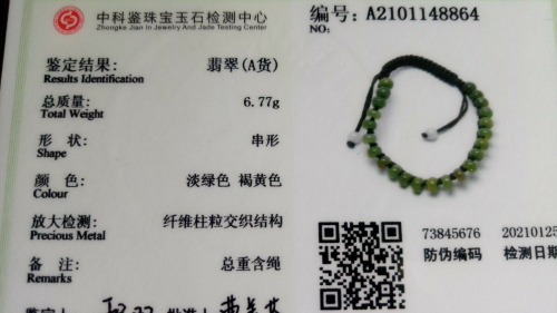 Certified Yellow Green Natural A Jade Jadeite Hand-Knitting Circle Bead Bracelet