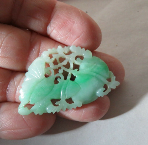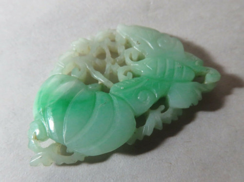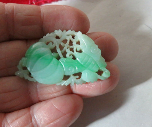 Carved Jade Jadeite Pendant with Butterfly, Gourd