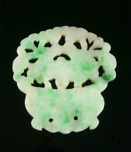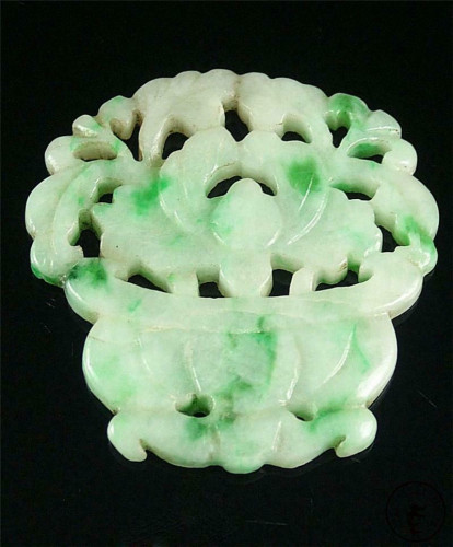 Antique Old Genuine Jadeite Emerald Jade Pendant Netsuke flower ~ AUSPICIOUS