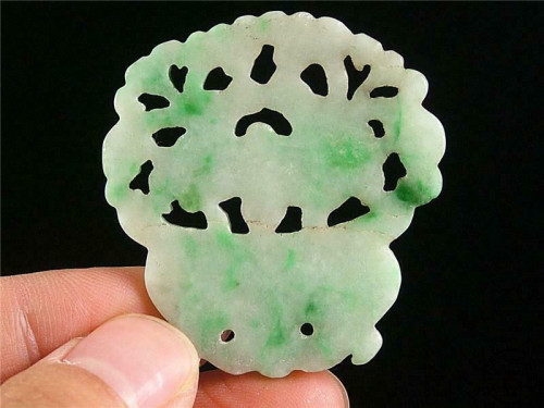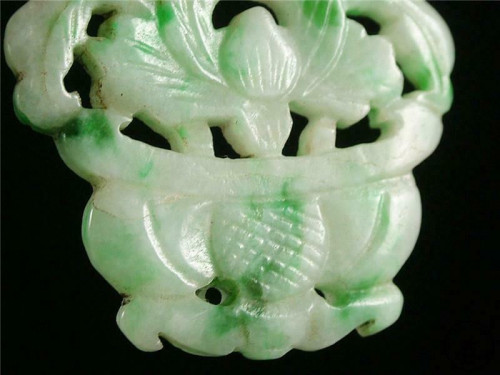 Antique Old Genuine Jadeite Emerald Jade Pendant Netsuke flower