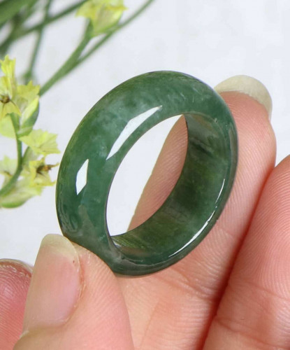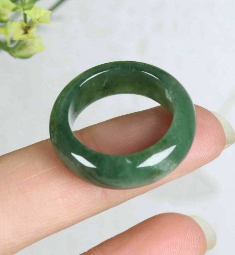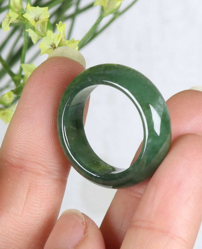 Cert'd Dark green 100% Natural A Jade jadeite 17 mm Ring