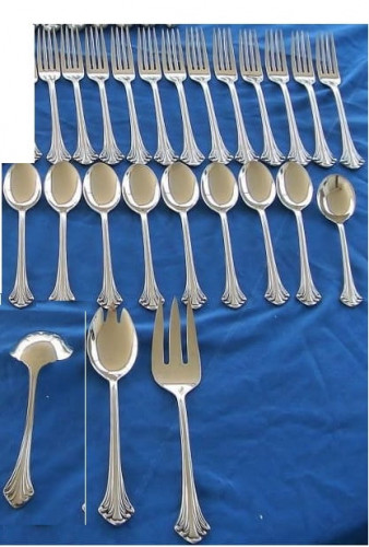 Flatware Towle Colonial Plume, Oneida Toujours; antique utensils