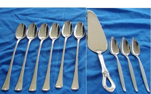 Pic 2) Oneida: Toujours (Cube mark), Community Distinction, and Frostfire, all stainless steel. 10 pieces.