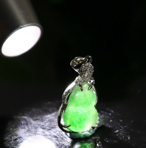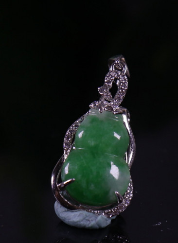 Cert'd 925 Silver Green 100% Natural A JADE jadeite Pendant Gourd