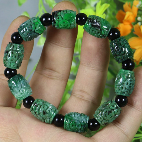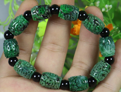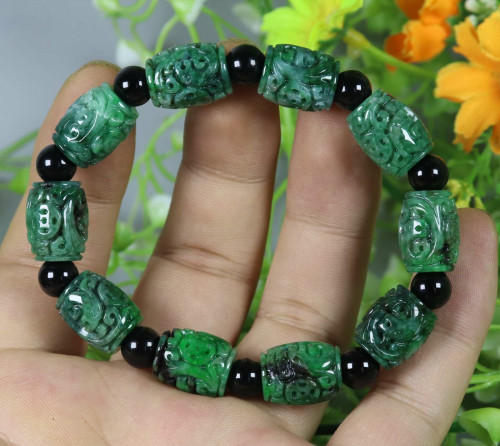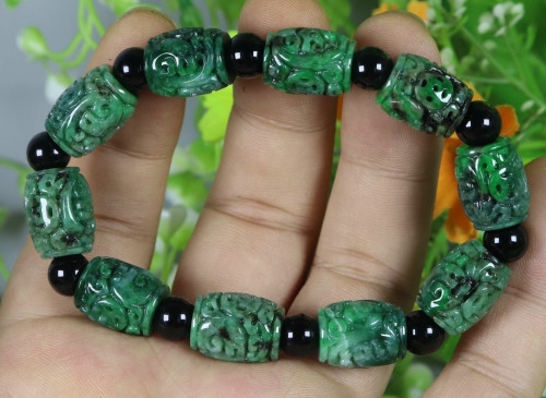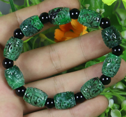 Certified Green 100% Natural A JADE jadeite Moire Bracelet 云纹手链