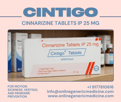 Cintigo tablet (Cinnarizine) is available at an affordable price. For more information, visit: onlinegenericmedicine