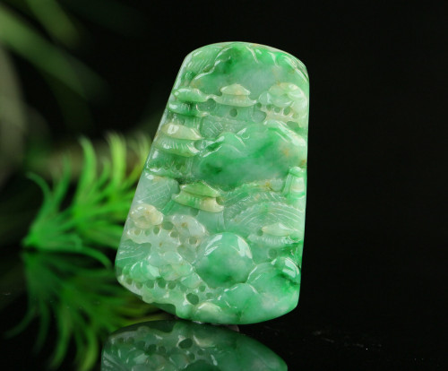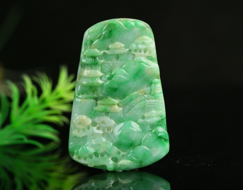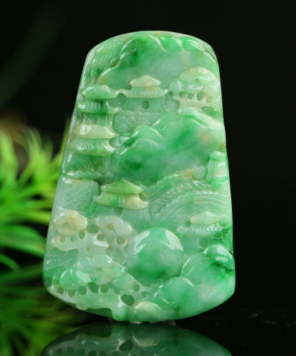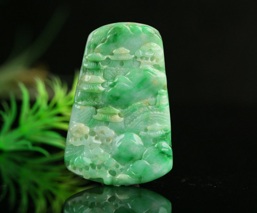 Cert'd Untreated Green Nature Grade A Jadeite Jade Pendant landscape a14253251