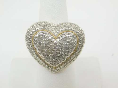 ESTATE 1/3CT DIAMOND HEART RING 10.9 GRAMS SIZE 7 JWBR SILVER GOLD PLATED