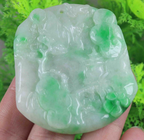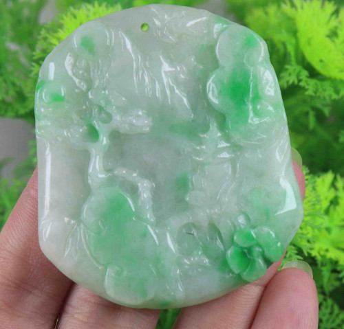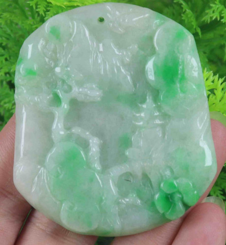 Certified Green 100% Natural A Jade jadeite landscape Pendant 13801a 山水风景
