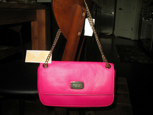 NWT Michael Kors JET SET CHAIN ITEM SM LEATHER SHLDR FLAP RASPBERRY