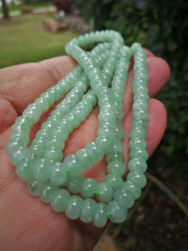 Natural Grade A Light Green Jadeite Jade Bean Necklace