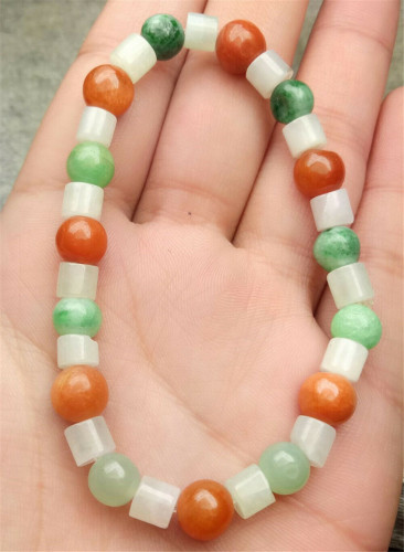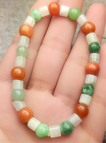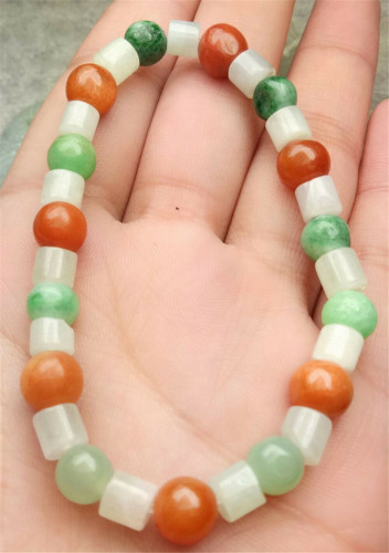 Natural A Jadeite Carved Circle Beads 路路通 Stretchy Bracelet