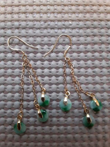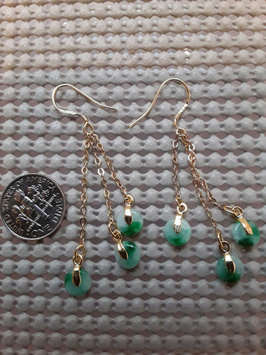 Green Jade Jadeite Earring Protection Coin 925 Silver Gold Plated