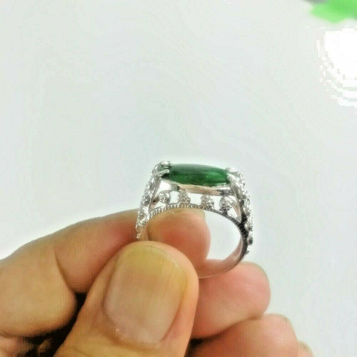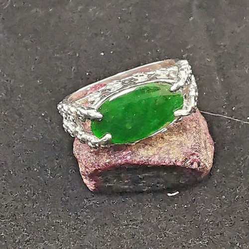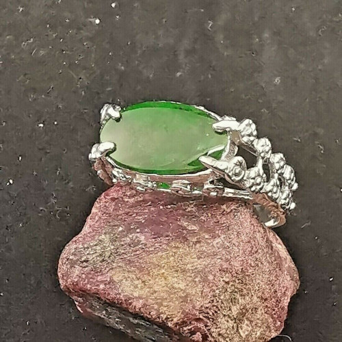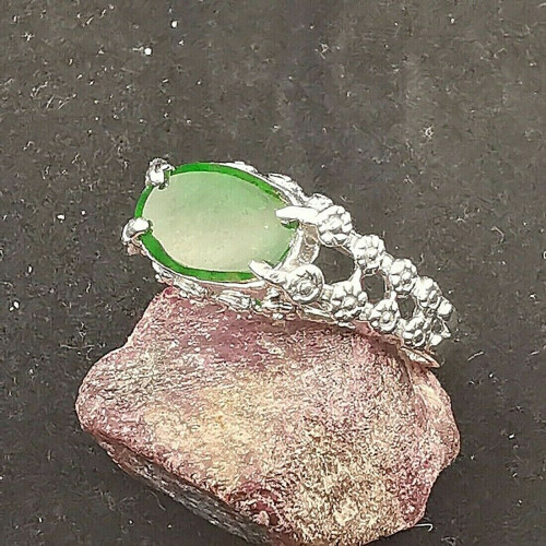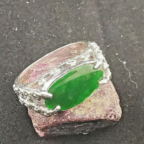 Green Type A jade jadeite Cabochon Oval 925 Sterling Silver Ring