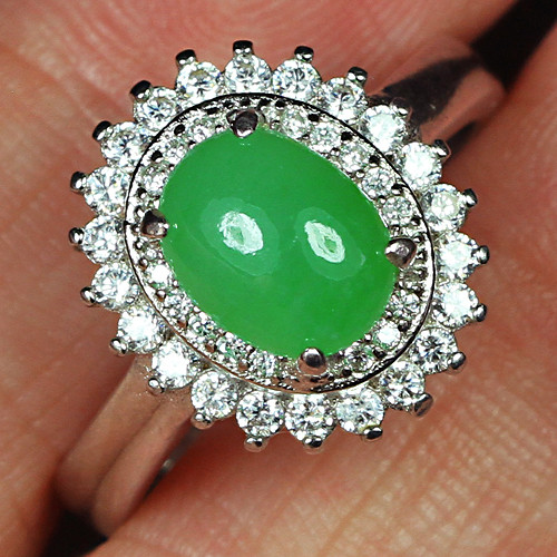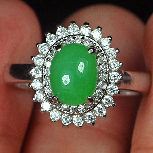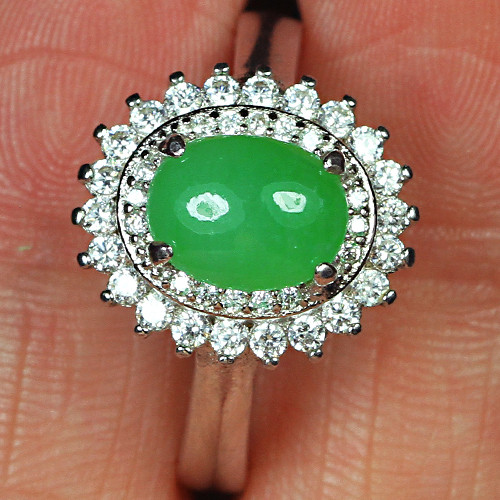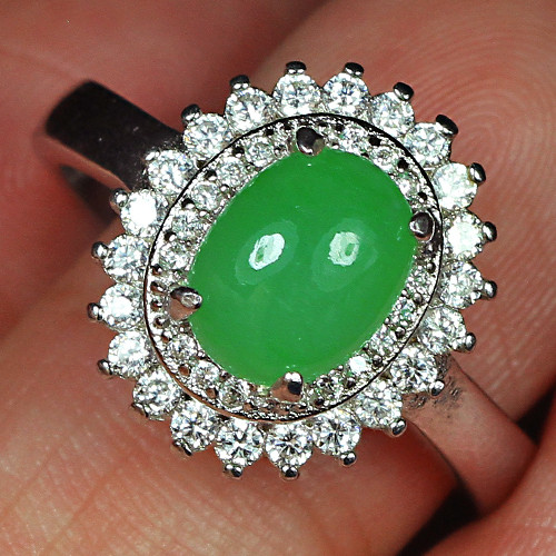23.7CT 925 Sterling Silver 100% Natural Grade A Green Jadeite Ring CYRW14