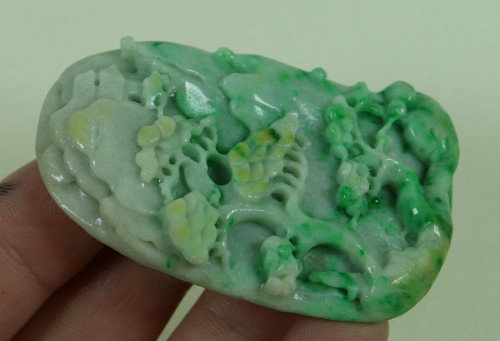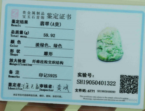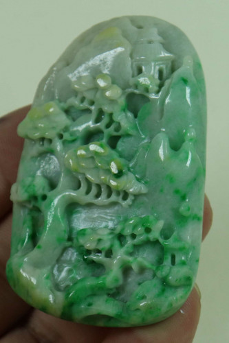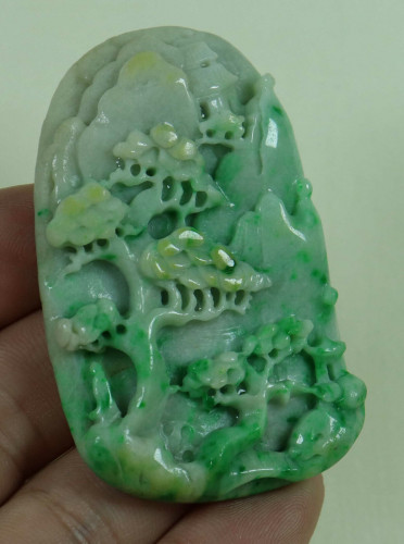 Cert'd Green 100% Natural A Jade jadeite Pendant Carved landscap