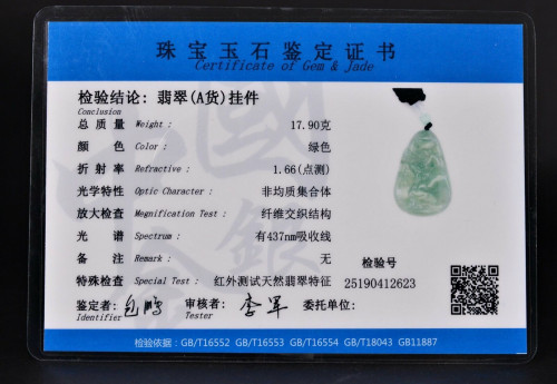 Certificated Natural Grade A Light Green Jadeite Jade Pendant