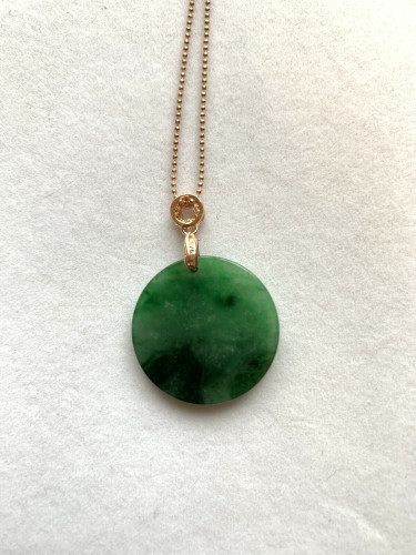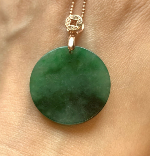 This is a high-quality spinach green jadeite/jade pendant, simple and fashionable. It is a good size for everyday wear. It has a very fine stone texture and high clarity. The bail is sterling silver 925.