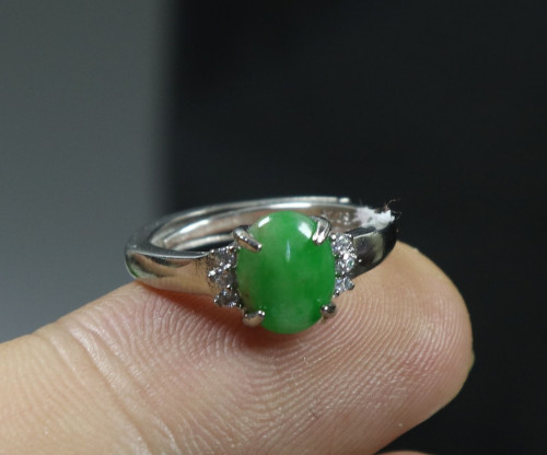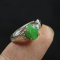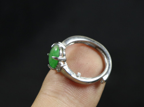 Silver Cert'd Green 100% Natural A Jade jadeite Adjustable Ring