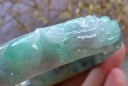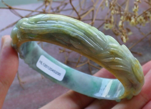 Certified Natural A JADE Jadeite Dragon Phoenix Bangle Bracelet
